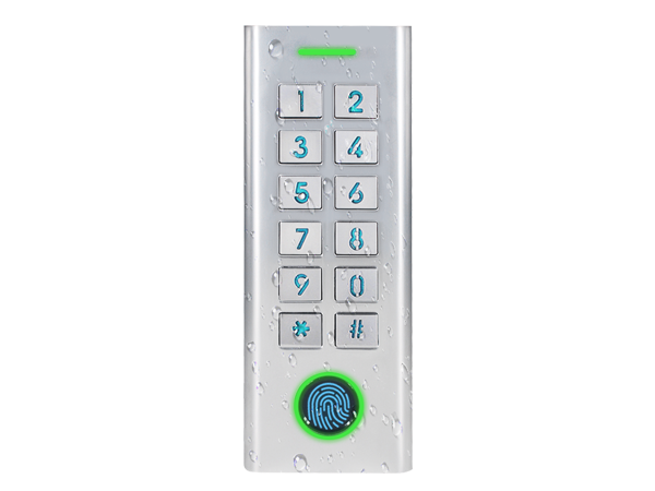 keypad and master,and supports fingerprint access and PIN access,with external alarm,door contact,exit button.